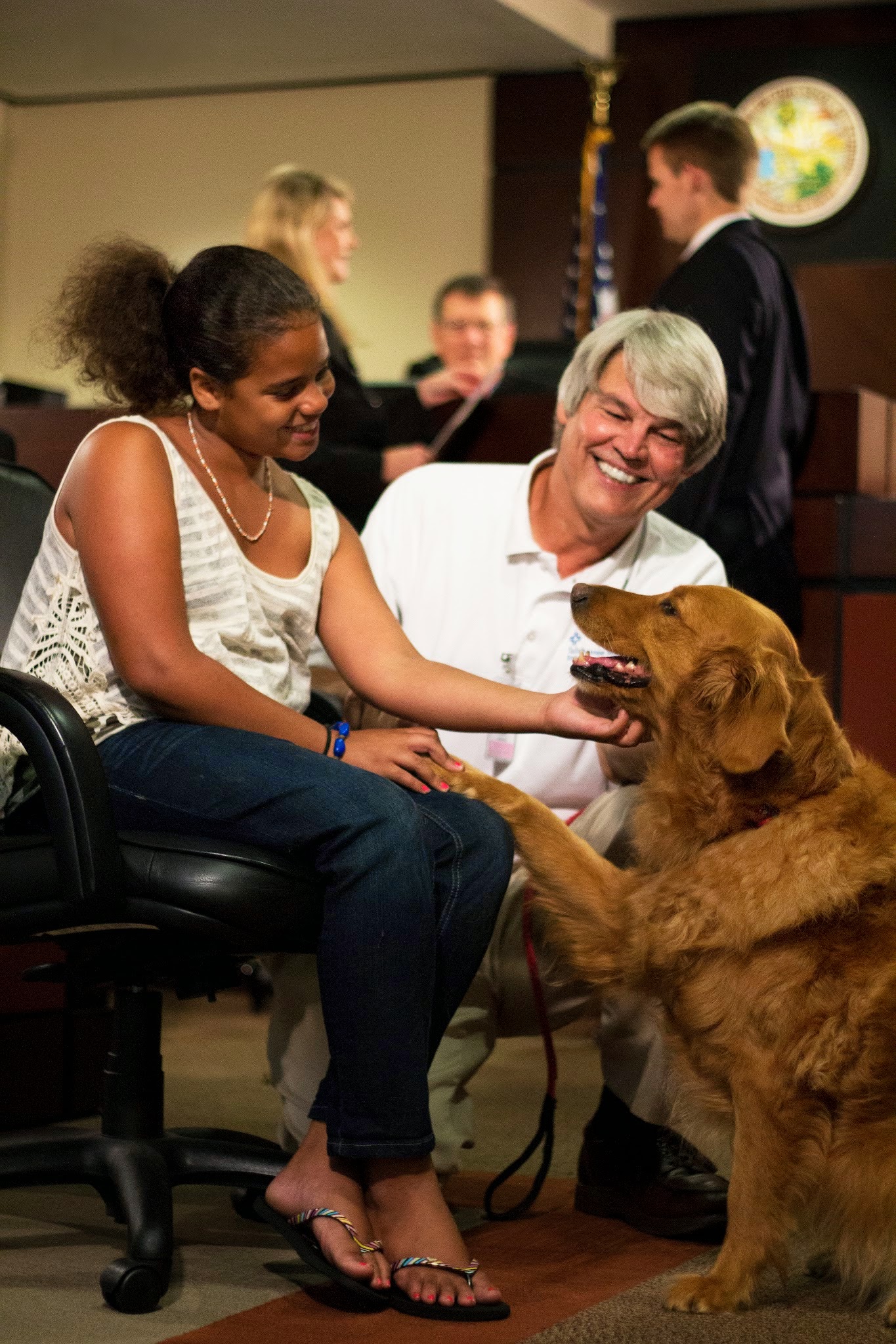 2014: Florida legislators refine the original law to allow therapy dogs in the courtroom on cases involving sexual abuse victims who were under 16 at the time the crime occurred, and for anyone who is intellectually disabled.